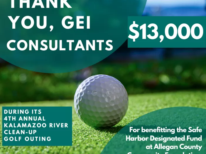 Each year, GEI Consultants hosts a charity golf outing, and this year, the Safe Harbor Designated Fund at the Allegan County Community Foundation (ACCF) was designated as the event’s beneficiary.